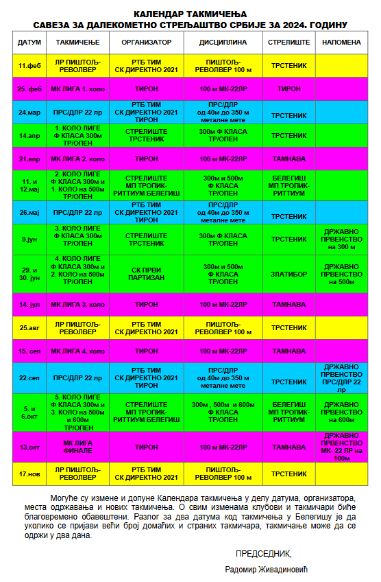 SAVEZA ZA DALEKOMETNO STRELJAŠTVO SRBIJE ZA 2024. GODINU